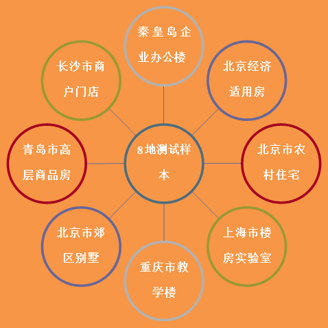 2011 年~2012年采暖季,課題組針對不同建筑類型、不同經(jīng)濟水平、不同氣候區(qū),其中居住建筑既有經(jīng)濟適用房,城鎮(zhèn)別墅還有農(nóng)村住宅,以及小型公建等有代表性 的項目,進行了相關(guān)測試。提取了近萬個低溫空氣源熱泵(太陽能)與地暖的組合系統(tǒng)建筑采暖能效數(shù)據(jù)。測試項目分類如下: