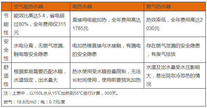 目前大多數(shù)家庭對(duì)熱水的使用需求都比較大,除了洗澡以外,洗碗、洗菜都需要用到熱水,尤其是冬天。為此熱水使用費(fèi)用是選購(gòu)熱水器重要的考慮因素之一。以華源空氣能熱水器為例,從表中可以看出,使用空氣能熱水器全年費(fèi)用僅315元,這將為家庭節(jié)省很大一筆開(kāi)支。